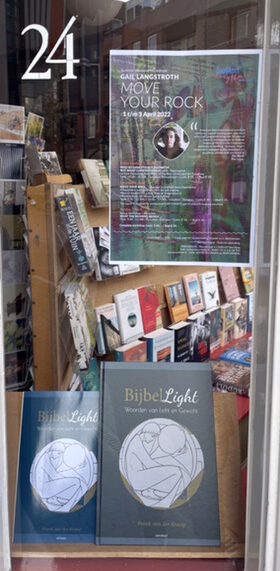 Bijbel Light in de etalage van De Haagse Boekerij, 26 maart 2022